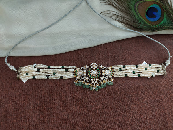 The intricate silver work on the choker is both delicate and sturdy, ensuring a comfortable fit.