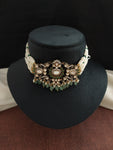 The combination of the silver monzonite stone and pearls creates a harmonious contrast, making this choker a stunning statement piece that is perfect for formal occasions.