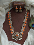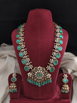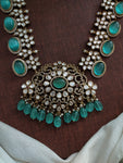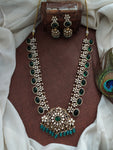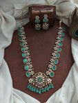 Dazzling moissanite or kundan stones adorn the long haram, adding a touch of timeless Victorian sparkle. This enchanting set is a perfect blend of tradition and youthful charm, making it a treasured piece for any jewelry collection.