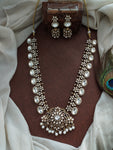 Step into a bygone era of elegance with our captivating Victorian Kundan Stone Long Haram Set. This exquisite piece, a treasure from our Victorian Collection, features stunning kundan stones nestled within intricate Victorian-inspired designs.