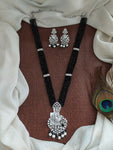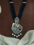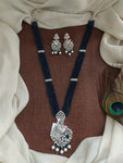 Long CZ beads zircon mala set featuring a stunning peacock design pendant with matching earrings. Crafted to mirror diamond brilliance, this set is available in four exquisite colors: Sapphire Blue,...