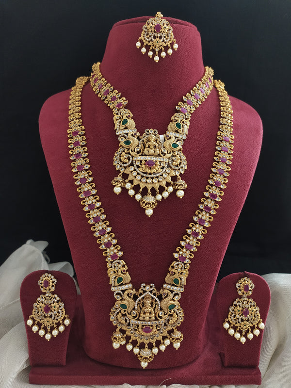 Short & Long Options: Choose between a shorter necklace set for a more versatile everyday look or a dramatic long haram set for special occasions. Both options come complete with a matching haram, necklace, tikka, and a pair of earrings, ensuring a cohesive cohesive and traditionally inspired look.