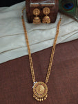The matt finish adds a subtle and elegant touch to the piece, creating a beautiful contrast with the ball chain style. The necklace is designed to be long, making it a perfect accessory for traditional attire.