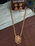 The matching earrings complete the set, adding a touch of elegance and sophistication. This Goddess Lakshmi Mala Set in ball chain style is a must-have for anyone who wants to add a touch of cultural significance to their jewelry collection.