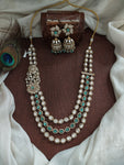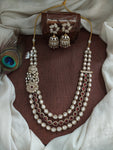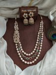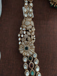 Introducing the Moissanite Layered Haram Set, a luxurious piece featuring triple-layered moissanite and Kundan stones with an elegant floral side mope pendant. This regal haram set is available in two distinctive...