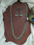 Elevate your jewelry collection with our Oxidized Long Mala Set, an elegant and versatile choice that adds a touch of sophistication to your look.