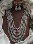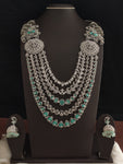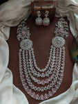 Elevate your bridal elegance with this stunning Zircon Layered Bridal Haram Set, available in the soft, ethereal tones of Pastel Mint and Baby Pink. Crafted meticulously with fine zircon stones, this...