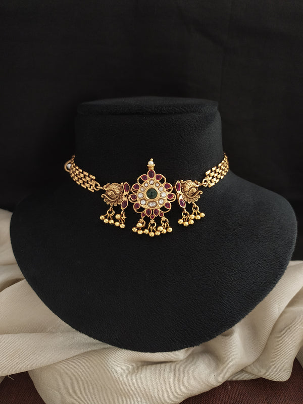 Enhance your traditional look with our Elegant Mini Kemp Stone Choker Set, a perfect blend of heritage and sophistication. Designed with finely crafted Kemp stones, this choker exudes timeless charm and elegance. The intricate detailing and vibrant stones make it an exquisite addition to any jewelry collection.