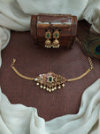 A timeless beauty, this antique traditional choker set is crafted with sparkling zircon stones and comes with a matching pair of elegant jhumkis. The intricate design and antique gold finish make it perfect for festive occasions, weddings, and cultural celebrations. A statement piece that adds regal charm to any ethnic attire.