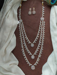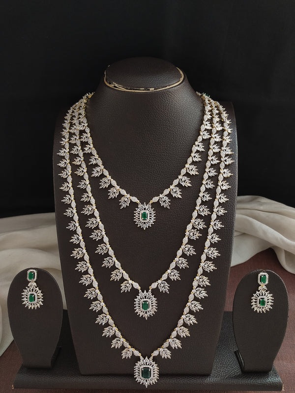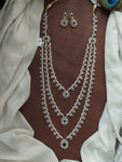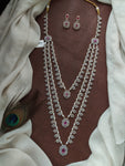 Dazzle in elegance with our Zircon Triple-Layered Haram Set, a stunning diamond replica designed to exude luxury and grandeur. Crafted with AD white and color stones, this exquisite piece replicates the...