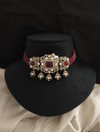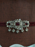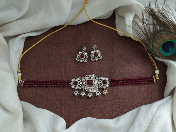 An exquisite Victorian-style choker set featuring a bold ruby choker adorned with a stunning Victorian pendant at the center. The intricate craftsmanship is complemented by mint and ruby-colored beads, adding a...