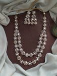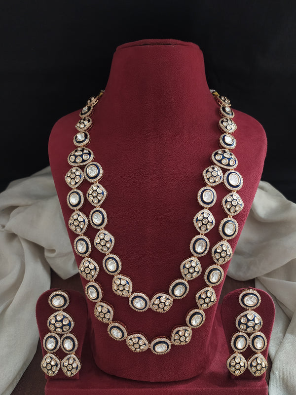 This exquisite double-layer Kundan Meenakari long haram is a perfect blend of tradition and elegance. Adorned with uncut Kundan stones in a pristine white finish, this masterpiece is available in two...