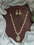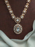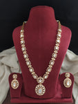 Elevate your traditional look with this exquisite Kundan Long Haram Set, meticulously crafted with semi-precious uncut diamond stones in a full white Stones. Designed for royalty and elegance, this statement piece is available in two stunning polishes: