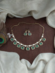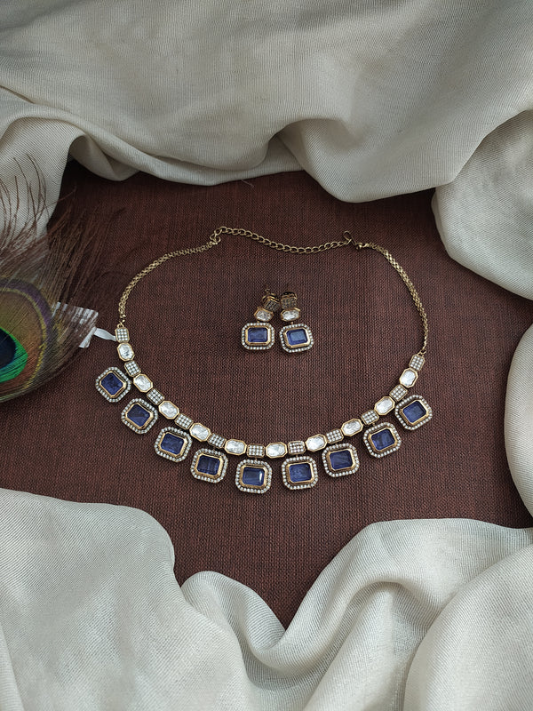 Embrace timeless elegance with our Victorian finish Kundan necklace set, meticulously crafted with semi-precious Polki Kundan stones. Available in a range of stunning colors – Baby Pink, Mint, Green, Violet,...