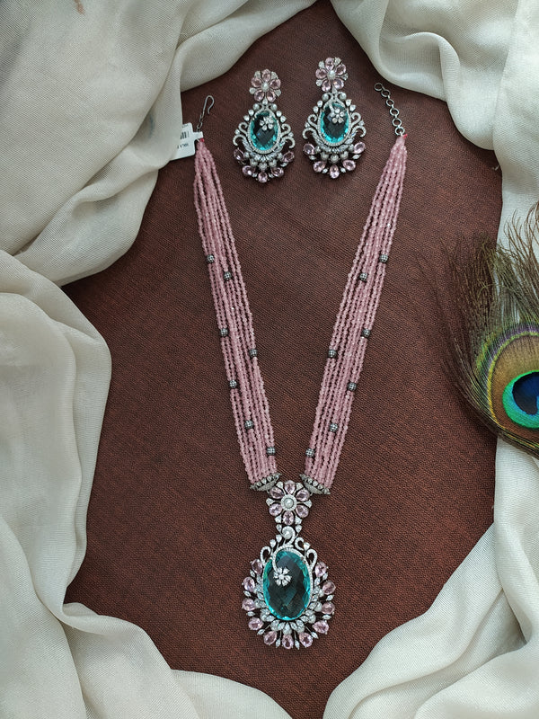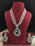 Presenting our Black Rhodium Zircon Mala Set, featuring a stunning floral pendant and elegant side beads. Crafted meticulously with high-quality zircon and doublet stones, this exquisite set is available in...
