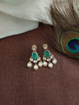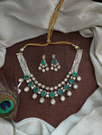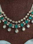 A blend of vintage charm and regal sparkle — this Victorian-style Polki Kundan choker necklace set is crafted with semi-precious Moissanite stones. Available in two elegant shades: Mint and Ruby...