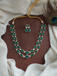 Double the charm with our Polki Kundan Victorian-style set, crafted with semi-precious Moissanite stones. This double-layered design adds depth and elegance to your festive or bridal look. Available in three rich hues – Mint, Ruby, and Green – and comes with matching earrings for a complete ensemble.