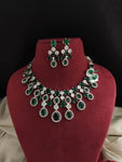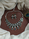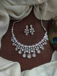 Step into a world of dazzling elegance with our Rhodium-Plated Zircon Necklace Set. This exquisite set features intricately crafted zircon stones in pear, cube, and oval shapes, creating a stunning visual appeal. Available in three enchanting colors: White, Hydro Blue, and Hydro Green. Enhance your allure with this versatile and sparkling necklace set.