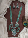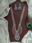 Complete with matching earrings that mirror the pendant’s design, this set is perfect for festive occasions, weddings, or even as a statement piece for your evening wear. The pastel colors and zircon detailing make this mala set a versatile addition to your jewelry collection.