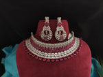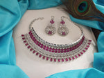 The AD Stone Choker Set with Matching Earrings in Hydro Ruby Color is a bold and beautiful accessory that is sure to make a statement.