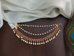 Crafted with meticulous attention to detail, this accessory showcases a high-quality zircon stone and features a beautiful combination of full ruby metal and delicate pearl strands.