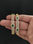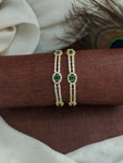 Indulge in the allure of our Dazzling Design Gold-Plated Stylish Zircon Bangles, a radiant addition to our gold-plated diamond collection. These bangles, embellished with shimmering ZIRCON stones and AD accents, exude elegance and sophistication. The intricate craftsmanship and contemporary design make them perfect for both formal events and casual outings, adding a touch of glamour to any ensemble. Elevate your style quotient with these mesmerizing bangles, whether worn individually for a subtle statement or stacked for a bolder look. With their timeless appeal and exquisite detailing, our Gold-Plated Stylish Zircon Bangles are sure to become cherished treasures in your jewelry collection.
