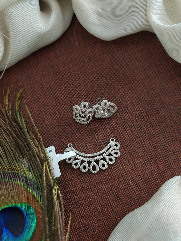 Adorn yourself with sophistication using this elegant silver-plated diamond pendant set, skillfully crafted with shimmering zircon stones that create a captivating and eye-catching allure. The pendant's timeless design is complemented...