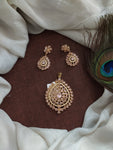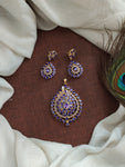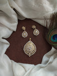 Enhance your grace with this sophisticated pear-shaped Zircon pendant set. The set includes matching floral studded pear earrings for a complete and coordinated look. Available in an array of colors:...