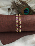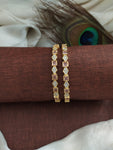 Sparkling Brilliance: Dazzling zircon stones, meticulously set within the design, capture the light beautifully. These stunning stones mimic the brilliance of diamonds, adding a touch of luxury and timeless sparkle to the bangles.
