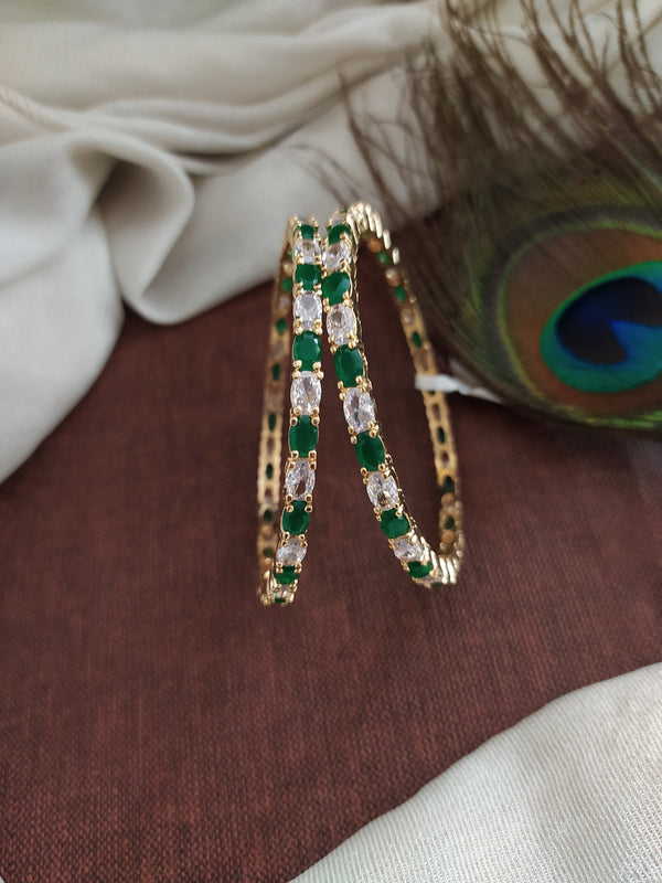 Indulge in the beauty of the sea with our Gold-Plated Zircon Bangles, part of the captivating Gold-Plated Diamond Collection. Shimmering green and blue zircons dance along the bangles, capturing the...