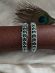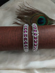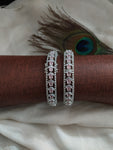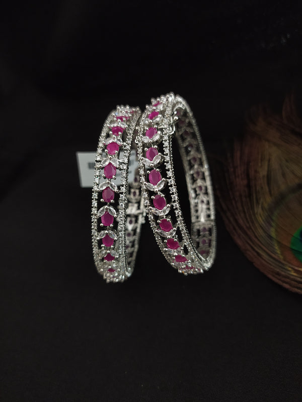 Introducing our exquisite OPENABLE Premium Look Silver Plated Amazing Zircon Bangles, a blend of luxury and sophistication. From our esteemed Silver Plated Diamond collection, these bangles are adorned with radiant Zircon and AD stones, exuding a captivating charm that adds a touch of glamour to any outfit. Available in enchanting colors such as ruby, baby pink, and green, these bangles allow you to express your unique style with elegance and grace. Crafted with attention to detail, these bangles are designed to elevate your ensemble and make a statement of refined luxury. Embrace timeless beauty with our stunning Silver Plated Zircon Bangles.