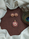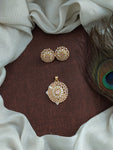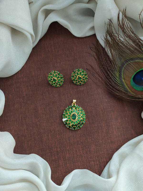 Elevate your style with our exquisite Gold-Plated Zircon Round Pendant and Matching Studs. The stunning pendant features a round design adorned with vibrant Zircon stones, adding a touch of glamour...