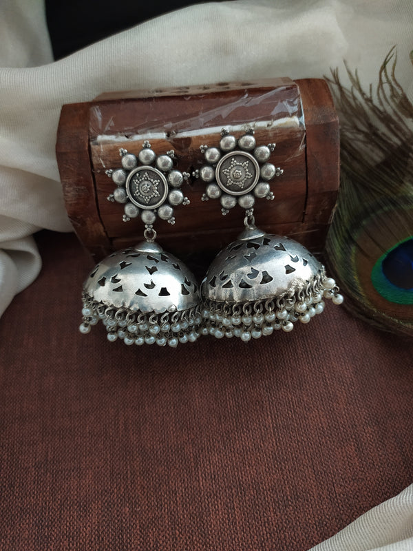 Elevate your ethnic look with these oxidized plain jhumki earrings. The simplicity of the design adds a touch of grace, making them versatile for various occasions. Crafted with precision, these earrings blend traditional aesthetics with modern style, making them a must-have in your jewelry collection.