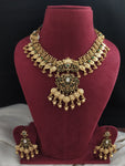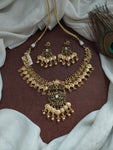 Elevate your ethnic look with this antique set, perfect for special occasions and cultural celebrations. The lord Lakshmi coins symbolize prosperity and blessings, making it an ideal choice for festive wear. Pair it with a saree or lehenga to complete your traditional attire.