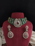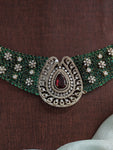 Step into royalty with this Victorian emerald green choker necklace set, crafted with sparkling stones that radiate a magical garden-like charm. The statement choker, paired with matching teardrop earrings, brings a true princess vibe to your look. Perfect for receptions, engagements, Haldi, or any wedding occasion where you want to shine like modern royalty.