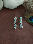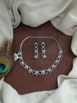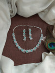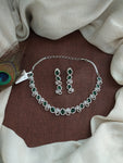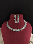 An elegant zircon choker-necklace set crafted in a sleek rhodium (silver) finish, designed to give a clean diamond-like sparkle. Styled with finely set zircon stones, this choker sits beautifully on the neckline and comes with matching earrings for a complete look. Available in refreshing and versatile color options — Mint, Baby Pink, Blue, Green, and Full White — making it perfect for party wear, receptions, festive occasions, farewell looks, and elegant evening styling.