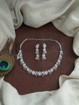 An elegant zircon choker-necklace set crafted in a sleek rhodium (silver) finish, designed to give a clean diamond-like sparkle. Styled with finely set zircon stones, this choker sits beautifully on...