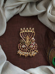 A unique Kemp Goddess pendant beautifully designed in a symbolic naag (serpent) shape, featuring a divine Lord Krishna motif at the center. Crafted with rich Kemp stones, this pendant reflects...
