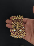 A unique Kemp Goddess pendant beautifully designed in a symbolic naag (serpent) shape, featuring a divine Lord Krishna motif at the center. Crafted with rich Kemp stones, this pendant reflects deep traditional and spiritual artistry, making it a meaningful choice for temple wear, festive occasions, and devotional styling. It can be easily paired with gold chains, black thread chains, or customized with beads to suit your personal style.