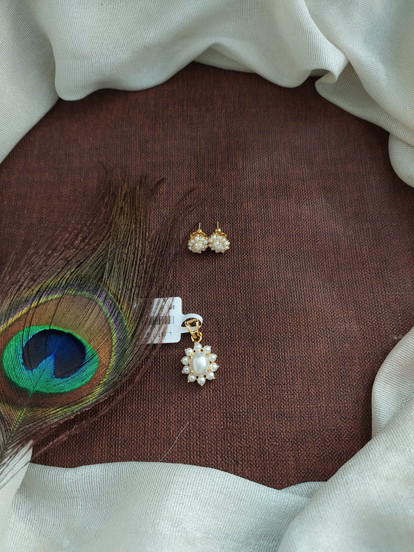 A timeless and elegant pearl pendant set paired with matching pearl stud earrings. Designed in a sleek minimal style, this set is perfect for daily wear, office looks, festive outfits, or gifting. The classic pearl shine adds a soft, graceful touch to any attire.