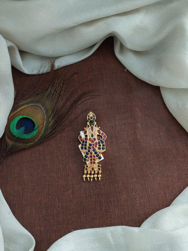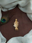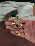 Elevate your traditional jewelry collection with this stunning Antique Kemp Goddess Pendant, meticulously crafted with intricate deity motifs. Adorned with vibrant Kemp and Kundan stones, this pendant is available in four rich color variations – White, Red, Green, and Blue. Its timeless antique finish makes it an exquisite centerpiece, perfect for pairing with gold chains, temple jewelry sets, or beaded malas.