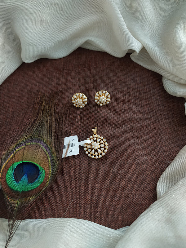 A timeless and elegant pearl pendant set paired with matching pearl stud earrings. Designed in a sleek minimal style, this set is perfect for daily wear, office looks, festive outfits, or gifting. The classic pearl shine adds a soft, graceful touch to any attire.