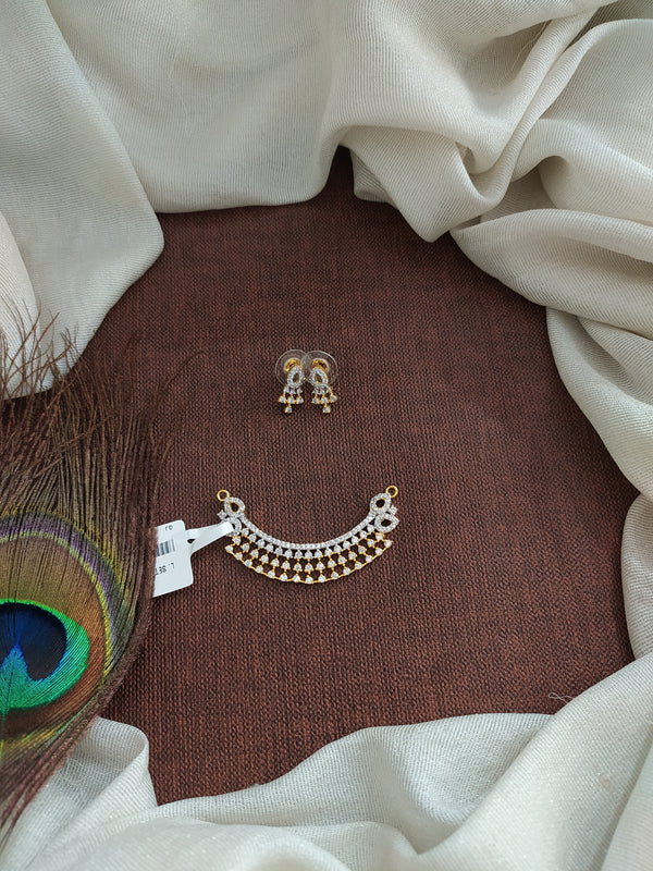 Elevate your traditional look with this Diamond Finish Zircon Mangalsutra Pendant Set, designed to bring a perfect blend of tradition and modern luxury. The pendant is meticulously crafted with brilliant zircon stones, giving it a radiant diamond-like appearance, while the sleek black bead mangalsutra chain maintains the essence of this traditional symbol of love and commitment.