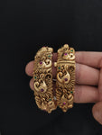 Indulge in the captivating beauty, cultural significance, and sophisticated charm of the Peacock Design Kemp Stones Matt Antique Screw Bangle from Sonal Fashion. Add a touch of tradition and timeless elegance to your collection today!