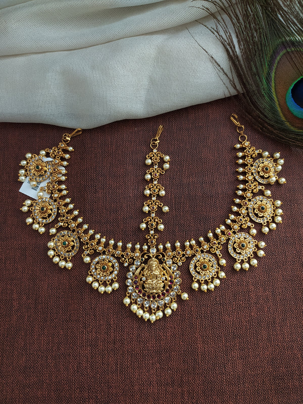 Look timeless and beautiful with our Antique and Spiritual Tikka Set. Crafted with Kemp stones and Lakshmi, the intricate design of this set will add a regal touch to any ensemble. Perfect for any special occasion.