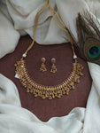 Adorn yourself with timeless elegance in our antique kemp necklace set. The exquisite design features vibrant kemp stones in red and green, complemented by golden ball drops for added allure. Expertly crafted to showcase the beauty of kemp stones, this antique necklace set will add a touch of elegance to any outfit. The vibrant red and green stones are perfectly complemented by the delicate golden ball drops, creating a truly alluring piece. Perfect for traditional occasions, weddings, and festive celebrations.