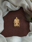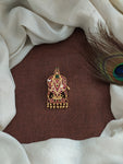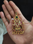 This Antique Kemp Pendant showcases the goddess Lakshmi, beautifully crafted with kemp, green, and white stones. It features a traditional design and comes with a back loop to easily attach it...