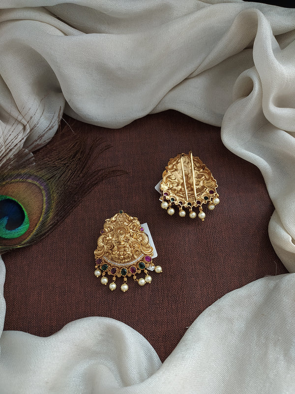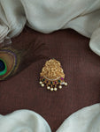 This Antique Lakshmi Hair Billa (also known as a brooch) embodies the grace and divinity of Goddess Lakshmi, making it a perfect accessory for festive occasions and traditional ceremonies. The piece is intricately crafted with stunning detailing of Lakshmi, adorned with antique gold finishing that adds a regal, timeless charm. Whether pinned onto a bun or used as a decorative hair ornament, this billa instantly elevates your look, adding a touch of elegance and spiritual significance.