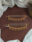 Elevate your traditional look with our exquisite Traditional Ear Chain, also known as Matil, crafted in an antique finish with kemp and green stones, adorned with delicate pearl strands. This piece seamlessly blends heritage and elegance, making it a perfect addition to your jewelry collection.