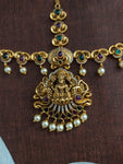Luminous Kemp Stones: Deep green kemp stones adorn the pendant, adding a touch of vibrancy and cultural significance. These captivating stones symbolize growth and prosperity, perfectly complementing the Lakshmi motif.